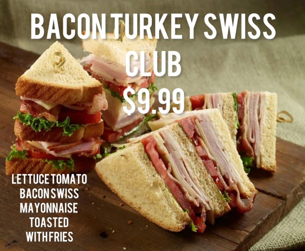 Turkey and Ham Made with Lettuce, Tomato, Bacon, Onion, Mayo Served on 3 Slices of Toast