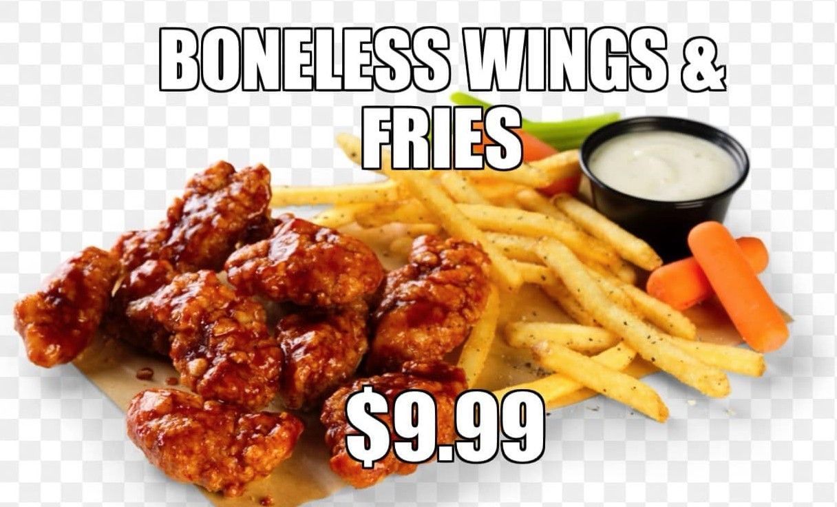 4 Piece Wings Served with Kids Fries and 10 oz Drink